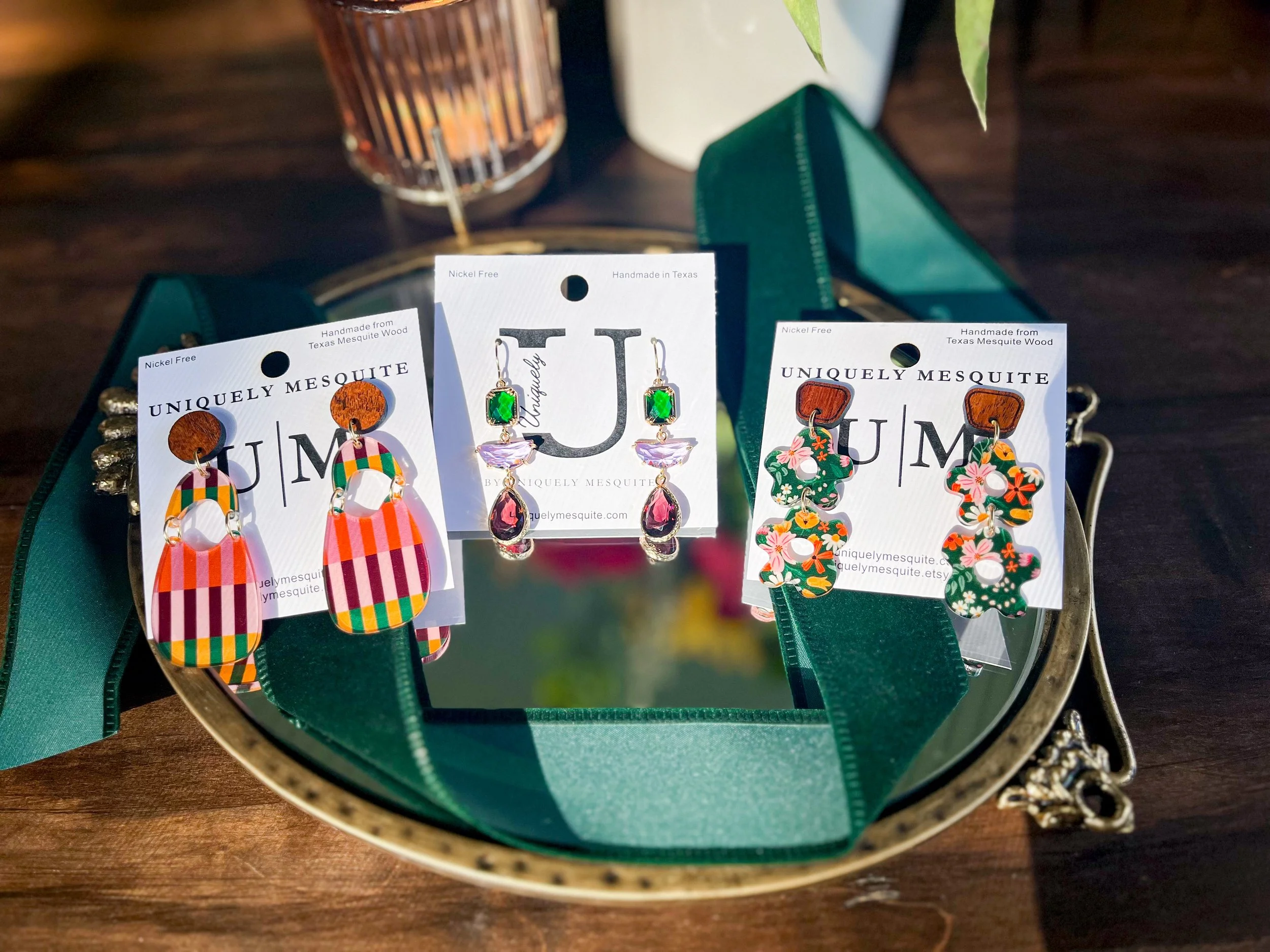 Categories: All Business Card Holders Earrings Sale All | Business Card Holders | Earrings | Sale | Fall Striped Dangle Mesquite Wood and Acrylic Earrings Groovy Flowers Mesquite Wood and Acrylic Dangle Earrings Cascading Jewels Earrings *Uniquely U* Blue Hydrangea acrylic and Mesquite Wood Earrings Bloomstruck Flower Mesquite Wood and Periwinkle Blue Acrylic Dangle Earrings Queen Anne's Lace Mesquite Wood Earrings Blue Chinoiserie Drop Bead Earrings *Uniquely U* Blue Gingham Square Acrylic Hoop Earrings *Uniquely U* Tie a Bow on It-Gold Bow Earrings *Uniquely U* Glitter Petal and Mesquite Wood Earrings Mosaic Feathers Acrylic and Mesquite Wood Earrings Lasso Me Pink Mesquite Wood and Pink Acrylic Earrings Lasso Me Blue Mesquite Wood and Blue Acrylic Earrings The Neon Spur Mesquite Wood and Pink Acrylic Earrings Maroon Mirror Leaves Mesquite Wood Earrings Naja Mesquite Wood Squash Blossom Beaded Necklace Pearl Chandelier Acrylic and Mesquite Wood Earrings Cascading Diamonds-4 Tier-Mirror Acrylic with Mesquite Wood Pink Pearl Flowers and Mesquite Wood White Pearl Flowers and Mesquite Wood Golden Deco Earrings and Mesquite Wood The Golden Teardrop Pink Speckled Oval Earrings Confetti Acrylic Mesquite Earrings Mesquite Leaf Acrylic and Mesquite Wood Earrings Purple Tie Dye Earrings Tortoiseshell Circle Earrings Personalized Texas Card Holder Texas A&M University Card Holder Custom Logo Card Holder Texas Card Holder